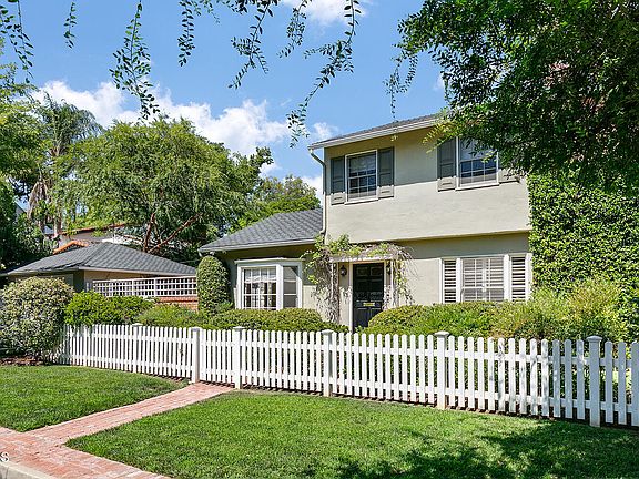 This charming colonial was built in 1937 and is located in the heart of Pasadena's San Rafael flats. The home is architecturally appointed with crown moldings, ample built-ins, gleaming hardwood floors and 2 beautiful fireplaces in the living room and primary bedroom. The home's natural light streams through the abundant windows and French doors. The dining room features a beautiful bay window and French doors that open to a large flagstone side patio. French doors in the living room open to a large grassy enclosed side-yard. Downstairs offers a 4th bedroom plus an office/den. Upstairs features a primary suite plus two other bedrooms and a full bathroom. Upgrades include replacement of the HVAC system, updated electrical to 220, newer kitchen appliances plus washer and dryer. The faucets were replaced in the kitchen, Primary Bathroom and second floor bathroom. The exterior doors were replaced in addition to new fencing and gates in yard and patio entry. New Plantation Shutters in the living room and office (2022) and custom window treatments were installed throughout most of the home. The interior has been painted throughout and all hardwood floors refinished. The property is also equipped with a security system and security cameras.