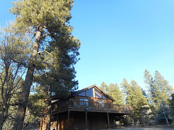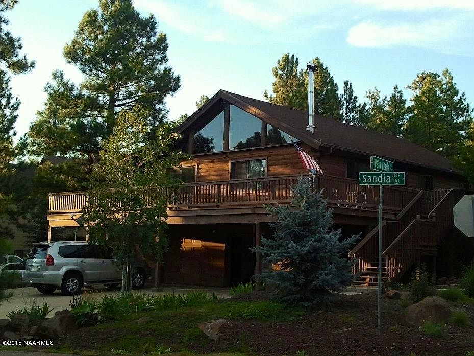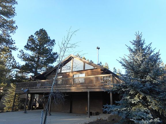 Perfect cabin in the pines!Soaring ceilings and wood interior provides a cozy lodge feeling.The wood stove offers warmth and ambiance. The spacious deck overlooks the tree tops and offers lots of privacy and views. Plenty of room under cabin for work area, storage and your toys along with the garage. Central air and propane furnace too. Come and enjoy Munds Park for your summer or winter fun. Please call for an appointment before showing.