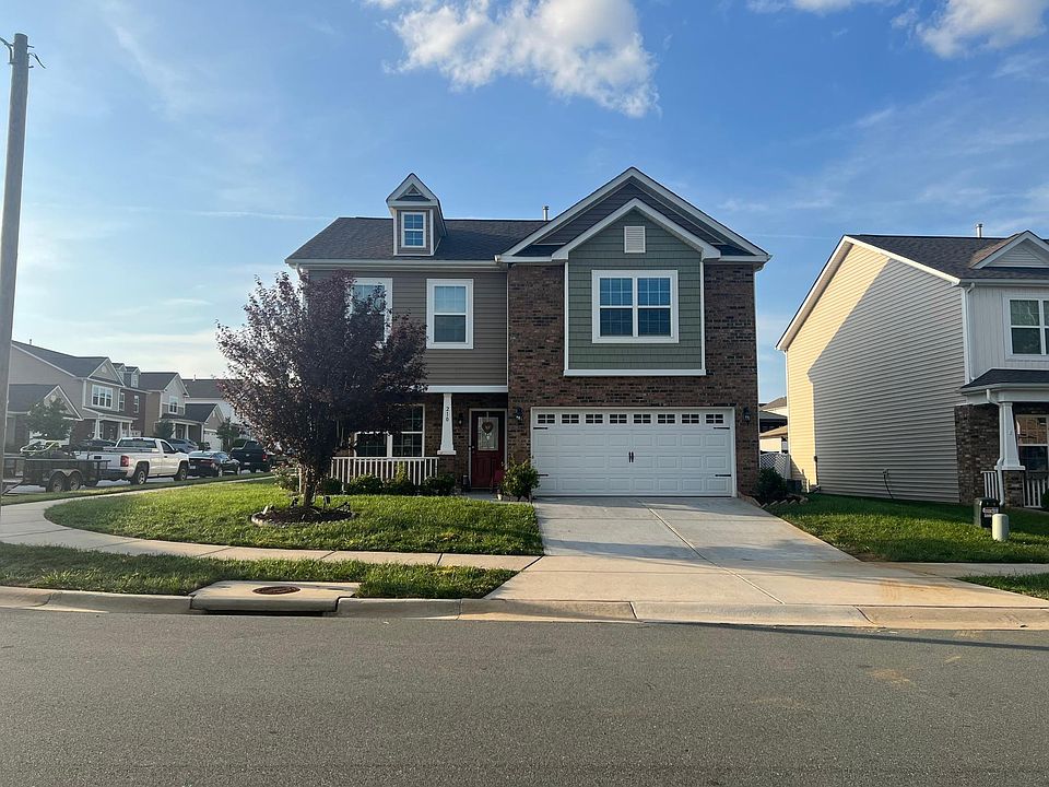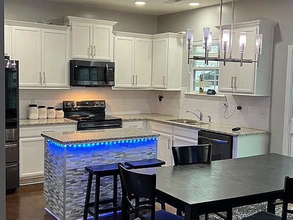 Lovely 4 bedroom 2.5 bath in The Cove at Mackintosh on the Lake. this home features nine foot ceilings, granite counter tops, bright subway tile backsplash and hardwoods throughout the main level. Kitchen opens to family room and is perfect for entertaining. Huge primary bedroom features vaulted ceiling. Primary bathroom has double vanities, soaking tub, separate shower and a huge walk-in closet.