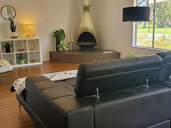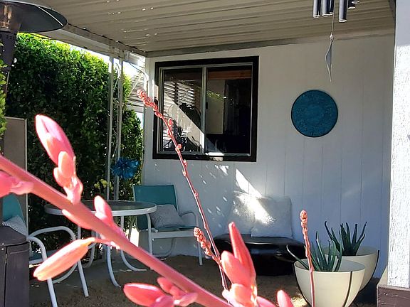 This beautiful corner house is in the 55+ Canyon Community. It has spectacular views of the park, pond and mountains. It is one of the largest floorplans in the community. It is very close to the gated entrance. Inside it opens up to a light and airy living room with dining area. Be sure to ask about the mid century fireplace. The family room is very spacious and has a sliding glass door on one wall and a built in bookcase on the opposite wall for plenty of display and storage. The master bedroom is very roomy with a huge walk-in closet. The master bathroom has been upgraded. One of the best features is sitting out on the patio with your favorite drink and to relax looking at the breathtaking views! Walking distance to the pool, hot tub, clubhouse, tennis courts and shuffleboard court. Walking trails for your dog. This is definitely a home to consider owning!
