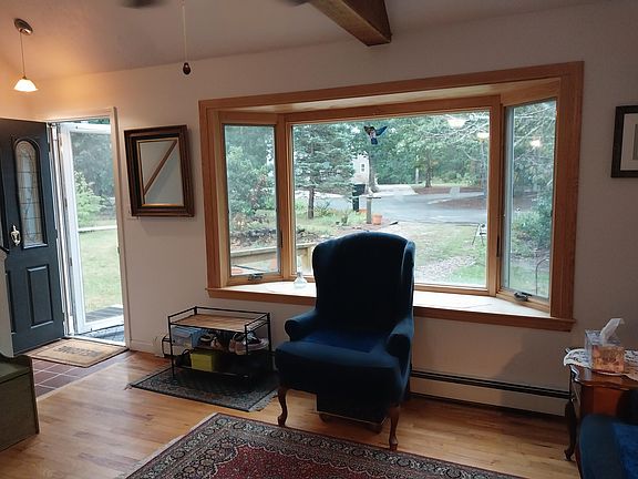 Eastham- 2300 + sq. ft. Convenient to Bay Beach is this Spacious Cape, 3 levels of living. Enter to a foyer with wood floor, high beamed ceiling, woodstove. To your left, step down into the living room with vaulted ceiling, beams, wood floors & deck access. Continue to long large Kitchen-dining area & a door to the deck. The Deck off kitchen wraps around the side & front. Go to the hall which leads to half bath, tile floor & washer dryer. Continue on in the hall to Main bedroom, wood floors, closets & a private tiled flr. full bath with 2 sinks.Let's go upstairs: at top of stairs open the door to a loft bedroom. 1/2 wall, lean over to view the 1st floor. Tiled flr. shower bath in hall. & 3rd bedroom.Leaving the 2nd floor, going to the walkout level you will discover a den, 2nd rm with sink, cabinets & counter, eating-craft area (no appliances), shower bath & utility room. Access via outside to a storage rm. Lot offers great privacy, especially in season. Access to Bay beach is convenient to walk, bike or drive for fun summer activities or gazing into the sea as the sun sets. Backroads to great eats, quaint shops, Drive-in, Mini golf & pond.