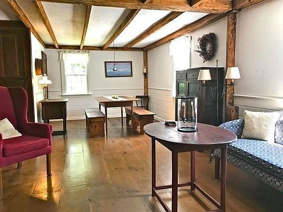 This well maintained and updated antique cape preserves the best of the 19th century details while having a comfortable eat-in country kitchen and remodeled full bath. The surprisingly open floor plan includes bright and airy rooms, a large living dining combo, huge family room with fireplace, vaulted ceiling and french doors to the sunroom, first floor master bedroom and first level full bath and a number of fireplaces. The glassed in sun room has vistas of a well landscaped mature yard that overlooks the Quinebaug River and the Westville Lake recreation and conservation area. A carriage house once housed animals and serves as storage, hobby space and more. The setting is a quiet country road, not isolated, and within easy reach of shopping and highways for ease of commuting. There is a lot of quality and many mechanical upgrades.