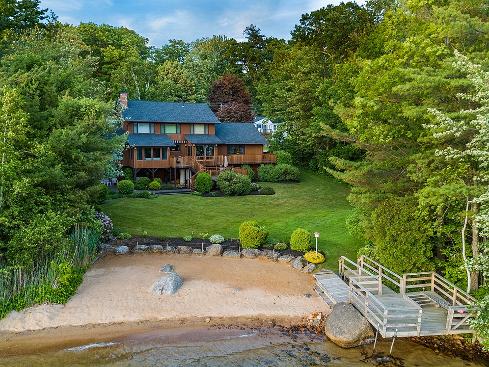 Laconia, NH- This spectacular waterfront home has an amazing beach and over 280 feet of frontage on Lake Winnisquam offering wonderful sunsets and mountain views. Sit at your waterfront deck overlooking the sugar sand beach or take the boat out for a sunset tour! This 5 bedroom, 4 bath home with over 4000 square feet of living space offers room for all. The rooms are spacious and all offer wonderful views of the lake! This home has been meticulously maintained and is in the process of being updated! The master suite is going through an amazing transformation, and the second upstairs bath has been elegantly updated as well. The lot is very private, yet you are in a great neighborhood where you can walk or bike into town for a coffee or snack! When you are in your back yard and at your beach, you really do not see anyone else! The beach is huge and offers a gradual decline into the cool soothing waters of Lake Winnisquam! The dock is new and can hold multiple watercraft. There is a 2-car garage as well as a 1-car under where you can store all your beach and boating toys! There is nothing to do except add your personal touches to this spectacular waterfront home!