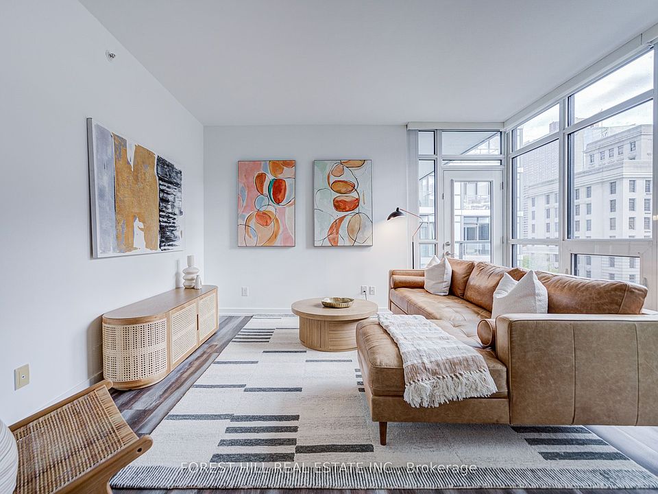 Exceptional south facing 1-bedroom plus den in the heart of downtown Toronto. Premium upgrades throughout. Equipped with brand new flooring, custom blinds, freshly painted walls, & open kitchen with sleek new faucet, brand new fridge and freezer. Recently upgraded washer & dryer add effortless convenience. Floor-to-ceiling windows illuminate open-concept living and dining areas, while the spacious den offers flexible space for home office or guests. Private balcony presents quiet solitude from the city. Includes One parking & TWO STORAGE LOCKERS! Building amenities include 24-hr concierge, fitness centre with cardio and weight areas, steam room and yoga studio, rooftop patio and lounge seating and stylish party room -- exceptional value in prime location. Steps to Toronto's financial, entertainment, and theatre districts with immediate access to TTC, PATH system, major hospitals, University of Toronto, TMU. Walk to Harbour front, CN Tower, Rogers Centre, Union Station, Scotiabank Arena, world-class dining, and dog parks along quiet Simcoe Street. Turnkey opportunity for discerning urban professionals and investors seeking modern comfort and unbeatable downtown convenience.