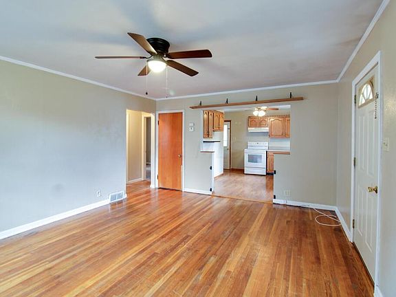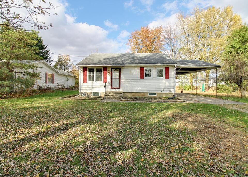 Surprise ** 2 car garage is at the back of the property!!! A Caledonia quaint 2 bedroom, 1 bath ranch with full basement has lots of hardwood floors, water proof plank flooring in the bath and kitchen. Full basement could be finished for extra living space. All windows are vinyl replacement windows New central air conditioning in 2022., Car port. Laundry on lower level. Don't pass this one up without taking a look.
