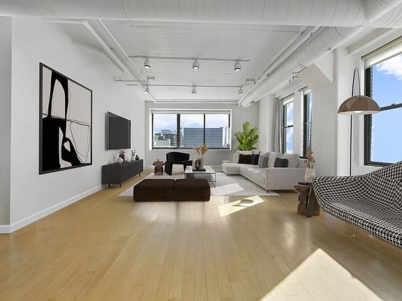 Expansive, loft-style, true 2 bed corner-unit home in Boston's Leather District nearby Seaport, Financial District, and Waterfront. Large banks of windows face south and west in the open-concept main living spaces, letting in an abundance of light all day. The updated kitchen opens to the living area and is outfitted with GE Profile, stainless steel appliances, light wood cabinets and granite counters. Off the main space, a private hall leads to a separate entry area and 2 large bedrooms, each with sound proof windows. The ensuite primary bedroom can fit a king bed and has a walk-in closet with California Closet system. The primary bath has both a large shower + separate soaking tub. The second full bath is located across the hall + has a large shower. Kenmore Elite washer/dryer in unit. Central AC throughout + hardwood floors in main living spaces. Concierge + elevator building with private gym and separate storage for this unit. Internet included. Garage parking nearby for rent.