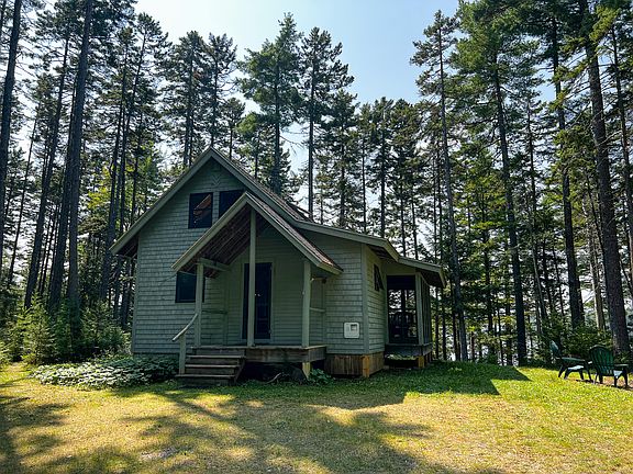 The cottage, built in 2005, features two bedrooms, one bathroom with a shower stall, a composting toilet, and an outdoor privy. An engineered gray water system services the cabin, providing an eco-friendly solution for wastewater management.