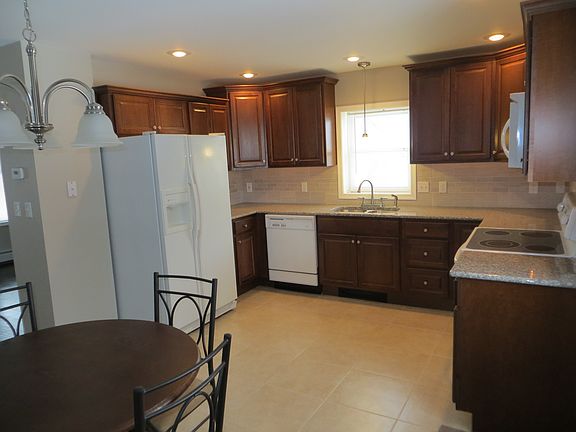 This is an all new top to bottom renovated home. Located in a quiet neighborhood on a large fully fenced corner lot with a large one car garage. Within walking distance to public park with pool. Just open the door and move in Large eat-in kitchen with all new cabinets, granite countertops, tile backsplash, tile flooring, and all new lighting. Refrigerator, stove, dishwasher and microwave range hood included.First floor washer and dryer included. Spacious living room. 2-3 bedrooms all with new flooring, large closets, ceiling fans and plenty of cable and phone jacks. All new bathroom with large soaking tub-shower trimmed with tile, tile flooring, granite vanity top and brushed nickel fixtures. Large attic and full basement storage. 16' x 24' garage with electricity and additional off street parking. Renovation also included: *Entire house insulated, all new sheet rock and paint *New interior and exterior doors and windows *Architectural shingled roof *Entire house rewired (including service) *All new Plumbing (including water pipes and drains) *All new hot water baseboard heating system (including boiler)