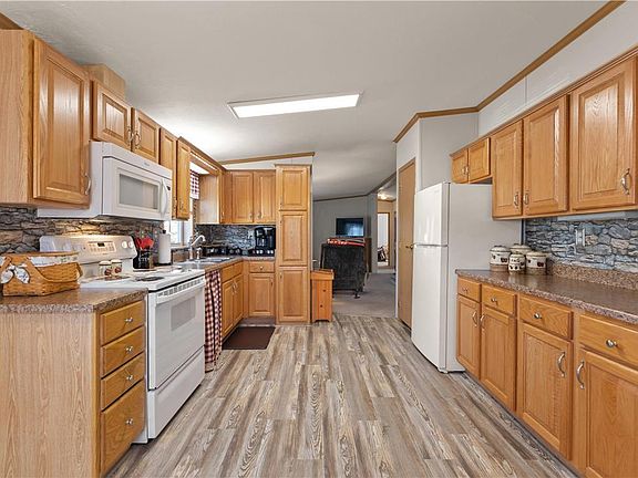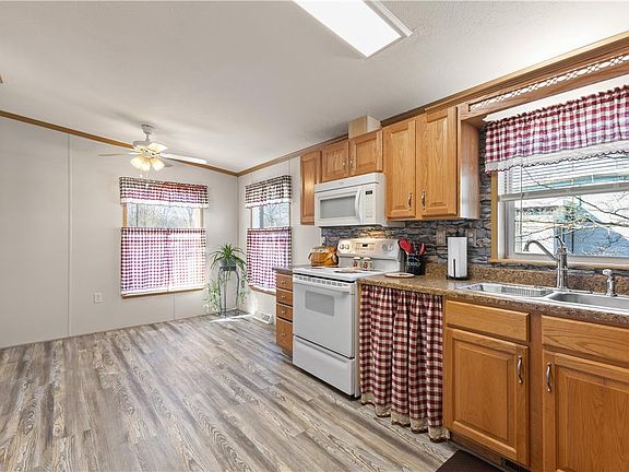 This corner lot home has so many wonderful features. The side yard is a perfect oasis in the summer. Privacy abounds since the home is adjacent to private property and a large parking lot that is occupied Monday-Friday. A lovely side deck with an entrance into the living room is perfect for morning coffee. The home is one of few in the community that is secured on a concrete pad and offers 3 bedrooms. All the floors were replaced with beautiful composite flooring and carpeting. Every room in this home is bright from the sun pouring in the windows due to the homes position. Cozy up on chilly nights with the wood fireplace in the living room. The fireplace can be converted to use propane. Lot rent is $625.00 per month, includes: public water, public sewer, trash removal, trash recycling, and snow removal from common street areas.