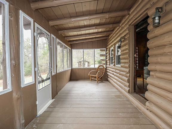 Enjoy one floor living in this fabulous log style home with impressive stone fireplace and generous- flexible living spaces to make your own. Galley style kitchen has ample cabinets and is open on both ends for easy serving to either side of the house. The main living room features a arched cathedral beam ceiling and an impressive stone wood burning fireplace. Fireplaces like this are a rare fine and is a key focal point in this generous sized 22 x14 living room. Four bedrooms (one without a closet) means great extra space office or den. Master bedroom complete with 3/4 bath and laundry room. Both bathrooms have been recently updated. The 24 x 7 porch is ideal for those warm NH summer nights and gives you added outdoor living space; rain or shine. You'll be pleased to know a brand new roof was installed on the main portion of the house in April 2021. Stone walls evident throughout the property and the deep lot is easily walkable. Property sits back from the road and has terrific yard space, Value added is the one car garage and a shed too! This is a must see.