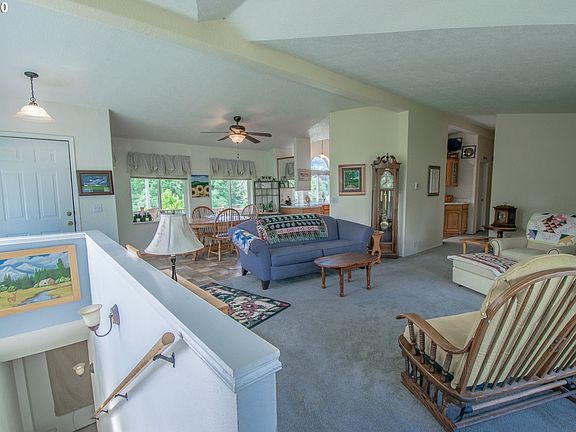 World class fishing retreat on South Umpqua River. Stairs down to river for sunbathing, swimming, fishing. Views and wildlife from your upper deck, koi ponds and gardening next to covered patio. Well maintained mfg home atop approx 1200sf of garage/shop with drive through access. There is an electric stair chair from garage to house. Fish cleaning/gardening sink in garage. 45 min to Roseburg, 1 hour to Eugene, 45 minutes to Winchester Bay for ocean fishing. Must see this 1/2 acre paradise!
