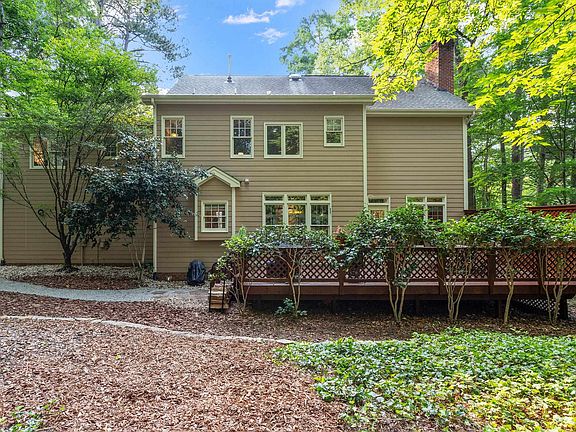 Location, location, location! Beautiful brick home in desirable Picardy Pointe! Wonderful, wooded lot on a quiet cul-de-sac with lots of privacy and a short walk to Lake Pine. Home features: Great open floor plan with all formals, tons of windows, fresh paint and new carpet. Amazing eat in kitchen with large island and built in desk that opens to great family room and outside deck area. 4 large bedrooms plus bonus room. Serene Oversized Owner's Suite has sitting area, beautiful, updated owner's bath with new tile, shower, dual granite countertop, & garden tub. Private third floor finished bonus room-currently home office but has endless possibilities! Large unfinished storage area on the other side of attic. Wonderful low maintenance yard with new fence (2023) and an irrigation system. Tankless water heater 2021. New Insulation and vapor barrier in crawl space 2023. Convenient to RTP, major highways, shopping, dining, Apex schools, and greenways. Close to downtown Cary and downtown Apex! Walk to Lake Pine Park! Just perfect! Welcome Home.