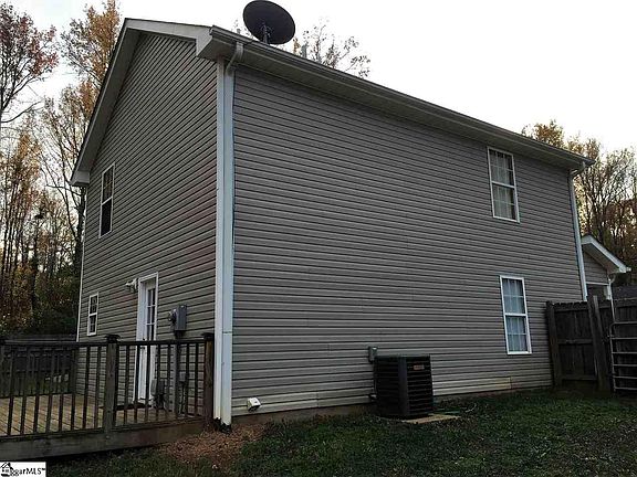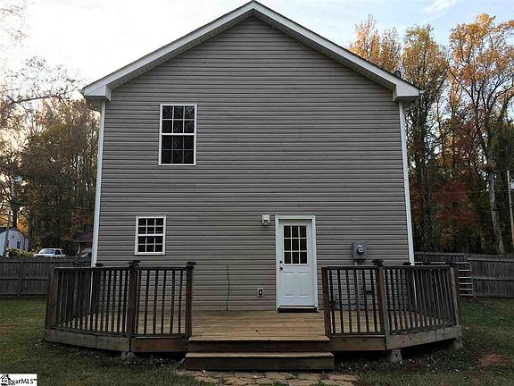 New on the market! Beautiful 3 bedroom 2 1/2 bath home just waiting to be decorated for the holidays! Only 3 minutes from I-85 and only 15 minutes from downtown Greenville. Home is move-in ready. Freshly painted in most rooms. Large Great Room & Large Dining Room. The chef in the family will love the eat-in Kitchen with ceramic tile counter-top and lots of cabinets, stainless steel smooth top stove and stainless steel dishwasher. Very nice laminate floors in Great room, Dining Room, Kitchen and Breakfast room. Half bath on 1st floor has ceramic tile. 2nd floor has 3 bedrooms & 2 full baths. Wonderful large deck (24x12) great for entertaining or just relaxing. Fenced in backyard with creek on edge of property. Wooded area behind home makes for a very private backyard. Large storage building (16x12 with 8x8 metal roll-up door & ramp) in backyard.