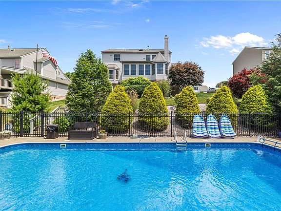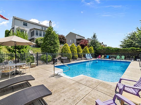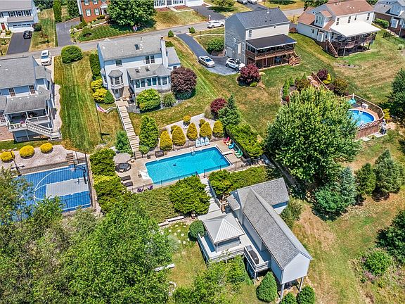 The ultimate in living enjoyment. Spectacular grounds surround this 2 story home that offers 4 bedrooms, 3 1/2 baths, family room with fireplace living and dining room, first floor laundry.. Just off the kitchen French doors lead you to a breathtaking sun room that offering awesome views of the pool, pool house, bar, fire pit and so much more. The bar area comes complete with furniture including 16 bar stools. The pool house has a complete kitchen with deep fryer, grill, pizza ovens, upright cooler, cable. Sound system inside and out. There is a first floor laundry and attached garages. The lower level is completely finished with game room, kitchen, and bath. There is a workshop under the sunroom. Also included are flat-screened TVs, two refrigerators, 2 stoves. All equipment in pool room kitchen, all outdoor furniture.
