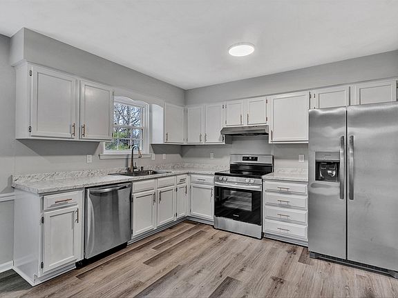 Nicely renovated ranch in close in Bedford County neighborhood. 4Bedrooms. 3 full baths. Large living room. Eat-In-Kitchen with new countertops, sink, stainless appliances. Freshly painted throughout with modern gray color. New interior & exterior lighting. All bathrooms have been updated, All new flooring on entry and lower level. New hardware on interior doors. New exterior doors. New heatpump 2023(Outdoor unit only). New vinyl siding, roof, gutters, windows, decking. Storage building with electricity. Septic pupmed and inspected 11/2023. Situated on 1.25 acre lot.