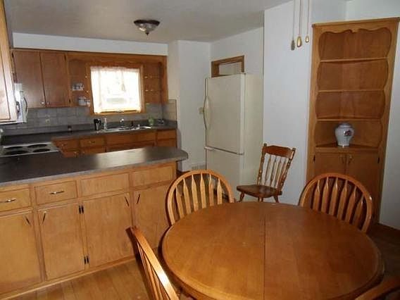 Well cared for city home with many updates priced to sell. This home features bright kitchen/dining area with bay window and hardwood floors, spacious living room with bay window, 2 nice sized bedrooms, clean dry basement, drive under garage, and a large private back yard. Just a few blocks from the downtown area. Nice home.