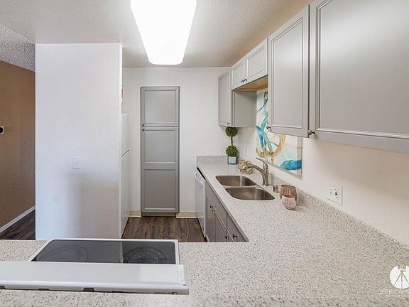 Lovely remodel on this Top Floor Condo! New countertops and cabinets in a great open kitchen with newer appliance. New laminate flooring in 2018. All new windows and roof. Hot Water Heater- 2018. Tons of light and vaulted ceiling. Large 2 car tandem garage with large storage space. Large bedrooms with private bathrooms and shared shower room connecting the bathrooms. Very clean & move in ready!