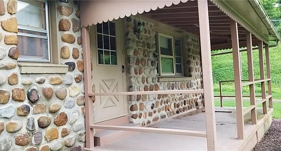 All Stone Ranch in desirable Nazareth School district. This one will NOT last long. Private setting. Sits back off the road. 3 bedrooms. Nice living room. Full basement. Back sun porch. Very large garage. The home is a dated and with work it could be stunning. Don't miss seeing this home. Very low taxes. Won't last long. Home sold as is.
