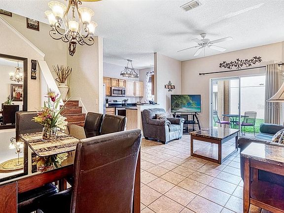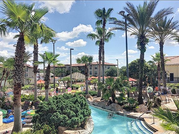 This home has all the upgrades, solid surface counter tops, stainless steel appliances in the kitchen, tile flooring downstairs and laminated wood floors upstairs. In addition, all the furniture has been upgraded. This home is unique from the others. They have converted the downstairs bedroom into a sitting area with a large flat screen tv and two comfy sofas to relax. This is a great area for the younger people when they want to play their video games especially on down days from the parks and rainy days. Publix grocery is short walk away along with several restaurants and other supporting businesses. This well known resort features an massive clubhouse with a new upgraded Bar & Grill, Fitness center, sauna, steam room, hot tub, arcade, ice cream shop, and more! The spacious resort pool pavilion includes a water slide, lazy river, outdoor jacuzzi, sand volleyball court, and a pool side tiki bar ( See resort pictures).