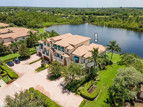 This ONE-OF-A-KIND townhome in the exclusive resort-style community of Jupiter Country Club has been completely renovated with stunning finishes and attention to detail. Only 6 homes in the community offer this 2-story floor plan with 3 bedrooms, 2.5 baths, a 2 car garage & private elevator with no other unit above or below. Relish maintenance-free living in this energy-efficient home with 2 AC units with UV sanitizing lights replaced in 2022, a tankless water heater, CBS construction, solid core doors and impact glass windows throughout. It's all about the views! The stunning tree-lined lake views can be enjoyed from the primary retreat, kitchen, dining area & patio. Tons of natural light pours into the home. The renovated kitchen boasts a re-designed L-shaped island with seating, soft- close shaker cabinets, quartz countertops and stainless steel appliances including a wine refrigerator & double ovens. Sip morning coffee from the private covered lanai with a motorized retractable screen. The outdoor living area is doubled with an extended patio perfect for experiencing panoramic sunset views. The upstairs primary suite includes a large seating area with a private balcony overlooking the lake. The primary bath is spa-like and has been completely remodeled with a freestanding soaking tub, large walk-in shower with frameless glass enclosure, double vanity with quartz countertops, and gorgeous porcelain flooring & shower tile. Two spacious guest rooms share a lovely balcony and guest bathroom that has been completely renovated as well. Jupiter Country Club is a luxury gated community conveniently located within close proximity of I-95 and the FL Turnpike, beaches, shopping, restaurants, parks & nature preserves. Club amenities include a Greg Norman designed golf course, 2 resort-style pools, the newly remodeled Sway restaurant, a state-of-the-art fitness center plus yoga/mat pilates/barre classes, massage/facial treatment services, tennis, bocce ball, pickle ball & basketball. Stay active with many weekly social & fitness events offered by the club. The design elements of this crème de la crème home are breathtaking! You must see it for yourself!
