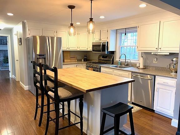 Location, location, location....nestled between a Christmas Tree Farm and the Lowell, Dracut, Tyngsboro State Forest with walking and biking trails this house is sure to sell fast. This 3 bedroom home has been lovingly maintained as it has been in the same family since it was built in 1978. The main floor of the home offers a spacious eat-in kitchen with stainless steel appliances opening to a large cathedral ceiling family room with sliders onto a multi-level deck. The first floor also has a front to back living room with a wood burning fireplace, a full bathroom, and a large laundry/mud room. The second floor has a large master bedroom with walk in closet, a renovated full bathroom and two additional bedrooms. In addition this home has a newly finished basement, two car garage, central AC, private backyard with firepit, and more. This home is a must see.