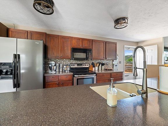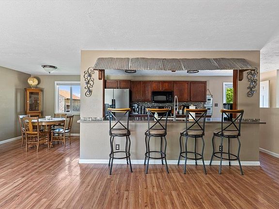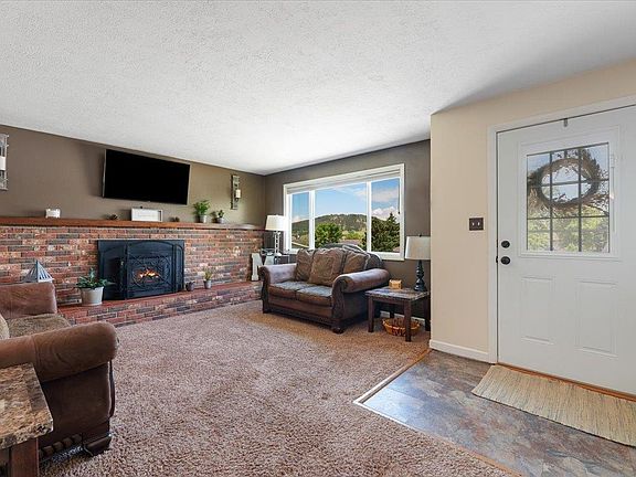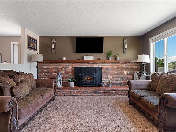Beautiful open floor plan and great for entertaining! The large deck adds to the entertaining space, relax and enjoy the views of the hills and Bear Butte and a perfect spot to watch the fireworks! The kitchen has been updated with solid surface counters, stainless steel appliances. The living room features a brick fireplace with wood burning insert for those chilly evenings. 3 bedrooms on the main floor and a large primary bedroom with a walk in closet big enough for two. Bath off primary bedroom has a soaking tub to enjoy after a long day and a separate shower and a tile floor. Roof and gutters were replaced in 2020, Furnace was replaced in 2019. New blinds throughout. Backyard has a privacy fence, and a shed for outdoor storage. Don't miss out on this spacious 4 bedroom, 2 bath home located in a cul de sac near the elementary school.
