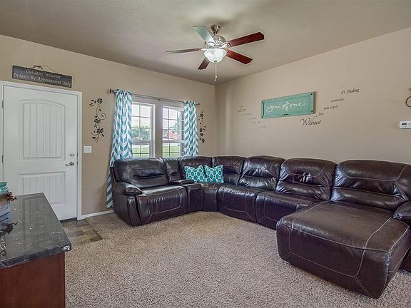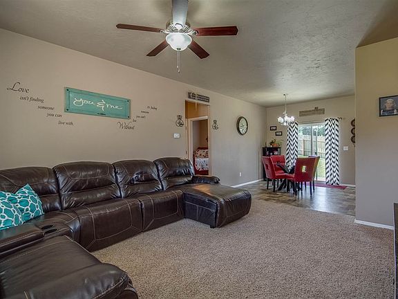 This 3 bed 2 bath home is ready to welcome it's new owners. It boasts a split bedroom plan and the master bath has a walk in closet. Tall ceilings, an open floor plan, neutral paint colors and nice carpet. The kitchen has upgraded cabinets, plenty of counter space and a large panty for all your storage needs. Lots of room in the fully fenced yard and a great graveled area beside the garage for RV, boat, or toy parking. Its move in ready and just waiting for you. Call and make an appointment today.