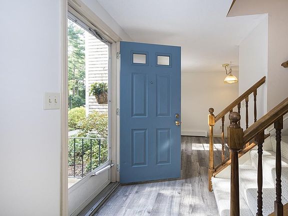 Private end unit location of this light & bright 2 bedroom 1.5 bath home makes it the perfect choice. Beautiful new gray flooring flows from the dining room into the kitchen and first floor half bath. Seller will provide buyer a $1500 flooring allowance to finish w/their choice of flooring. The front to back living room with fireplace is the perfect place to curl up with a good book on a chilly New England night. The second floor features two large bedrooms both with double closets and full bath with double vanity. Partially finished basement adds to the living space. Freshly painted on the interior, central a/c, Minutes from Commuter rail and shopping. All appliances to stay. Showings begin at the Open House Saturday 10/13/18 12:00-2:00.