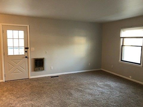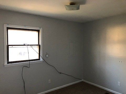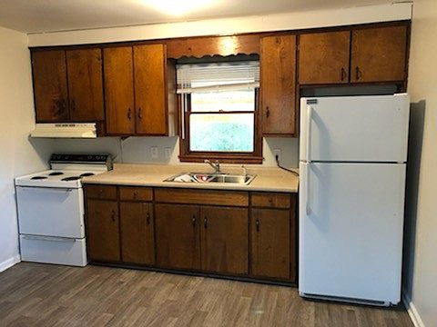 Fresh paint and new flooring in this 2 BR, 1 BA home, covered back porch, stove and refrigerator included, concrete driveway and storage area, measurements approx-measure if important