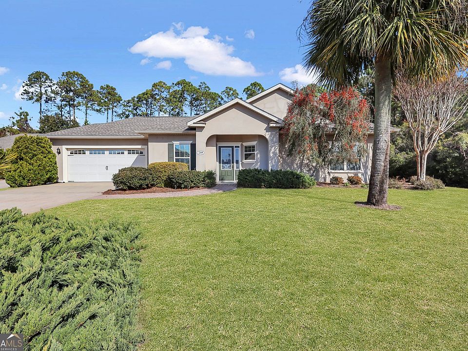 Maintenance-Free Living in a Gated Community! Discover effortless living in this 2-bedroom, 2-bath corner-unit condo nestled in a gated community with a pool, clubhouse, and fitness center. This low-maintenance home fronts beautiful community green space, is not in a flood zone, and offers public water & sewer. Step inside to a welcoming foyer entry with wood flooring and raised ceilings. The open and inviting floorplan features a formal dining area and a spacious living room with sliding glass doors leading to a screened back porch overlooking serene green space. The well-appointed kitchen boasts granite countertops, custom cabinetry, stainless steel appliances, and a pantry. The split floorplan ensures privacy, with the owner's suite offering a tray ceiling, en-suite bath with a double vanity, linen closet, jetted tub, glass-enclosed shower, and walk-in closet. A dedicated laundry room with a sink and built-in cabinetry adds convenience. Complete with a 2-car garage, this home is perfectly situated with easy access to I-95, HWY 99, and FLETC. Enjoy a worry-free lifestyle in a prime location-schedule your tour today!