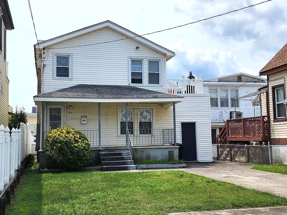 Duplex in North Wildwood, great opportunity to live in one unit and collect an income from the 2nd unit. 1st floor unit has a covered front porch, entry foyer, dining room, large living room with sliding glass door to rear deck, recently renovated Kitchen, 3 bedrooms and 1 full bath. There is central air conditioning and forced hot air heat. The 2nd floor has a vaulted ceiling in the living room, a sliding glass door to a deck, an eat-in kitchen, 2 bedrooms and 1 full bath. The 2nd floor has hot water baseboard heat/radiator and central air conditioning. Both units have a stackable washer and dryer closet. There is an outside storage closet and 4 off street parking spaces. There are separate electric and gas meters. All appliances are included. Come live the life at the Shore - enjoy all the restaurants, beaches and boardwalk. Just a short walk down the street to the Bay to take in Beautiful Sunsets. Close to Acme, pharmacy, restaurants.