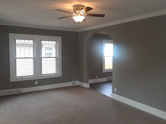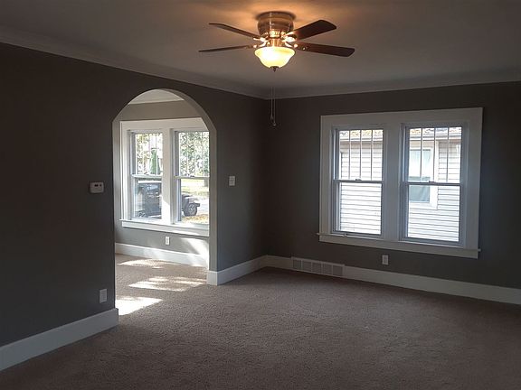 Completely remodeled 3 bed 1 1/2 bath with attached 2 car garage. Entrance through enclosed porch. Fresh flooring, light fixtures and paint through out. Bathrooms and kitchen have been updated as well. Brand new stainless steel appliances are included. Upstairs hallway has walk out to balcony that is above the patio area. Basement is clean, dry and has high ceiling making this potential additional living space.