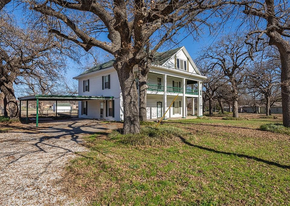 Colonial Style Home with Historical Charm and Surrounded by Trees on 0.79 Acres. One of the Oldest Homes in Springtown, See the Potential! Gigantic Kitchen with Breakfast Area, Eat at Bar, Plenty of Cabinetry, Double Oven, and Access to Backyard. Separate Formal Dining. Spacious Living Area has Exposed Brick Wall and Stained Wooden Beams. Master Bedroom Upstairs has Walk-In Closet. Bathroom has Dual Vanities, Garden Tub, and Separate Shower. Two Guest Bedrooms Upstairs. Enjoy Your Morning Coffee on the Second Floor Balcony. Two Car Carport. Centrally Located with Quick Access to the Springtown Square, Shopping and Restaurants. Add Your Personal Touch!