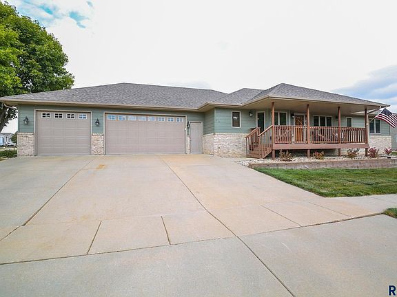 Enjoy small town living in a terrific, well-maintained home! Located in Dell Rapids, this 4-bedroom, 4 bathroom ranch home has been meticulously cared for. All you need to do is move in! The main floor offers tons of natural light with tile flooring and granite countertops in the kitchen. Main floor laundry. Lower level has a huge family room with a wet bar that includes built-ins and surround sound. Lower level also has 2 legal bedrooms and a 5th, non-legal bedroom. The garage is enormous! Five vehicles can fit. Also includes heat, drain, and an extra work area with bench. The home offers 2 covered decks. Enjoy coffee on the front deck in the morning and entertain friends at night on the back deck. New paint (interior and exterior) in 2020. New water heater in 2023. Don’t let this one slip away!