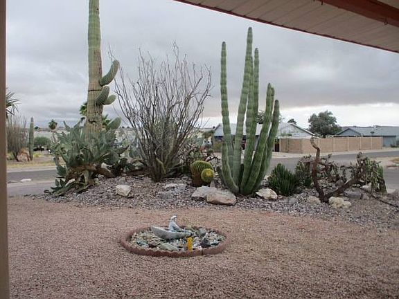 This home has a southwestern flair. The colors of turquoise and pink are carried throughout the living room, kitchen and family room. All the furniture and furnishings are staying with the sale of the house. The vaulted ceiling adds to the opening feeling of the living/dining room area. The back covered patio has a hot tub and a privacy wall. There is also a water feature that adds a soothing sound.