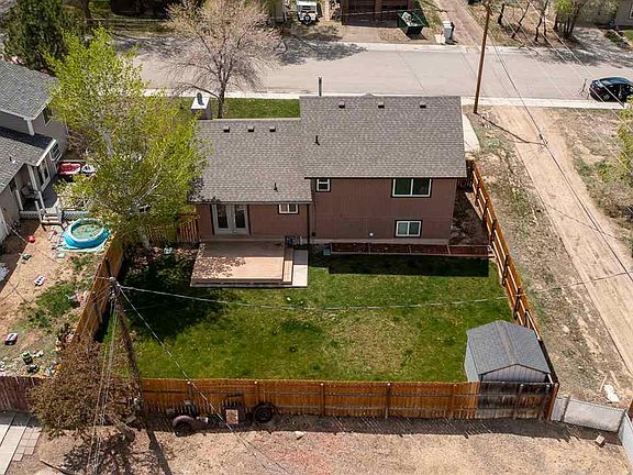 This move-in ready tri-level home sits on a great shaded lot with mature trees, sprinkler system, and privacy fence. The main floor features wood low-maintenance wood laminate flooring, vaulted ceilings, and large windows allowing in an abundance of natural light. The wood burning fireplace in the living room set the scene for gathering and enjoying the gorgeous Colorado winters. Quartz countertops and stainless steel appliances accentuate the updated kitchen, and custom wood blinds throughout the home eliminate one more move-in hassle. Out back, the private backyard can be enjoyed from the open deck ideal for entertaining, and RV parking and extra parking are available on the side and front of the home. This adorable home is ready for its new owners!!