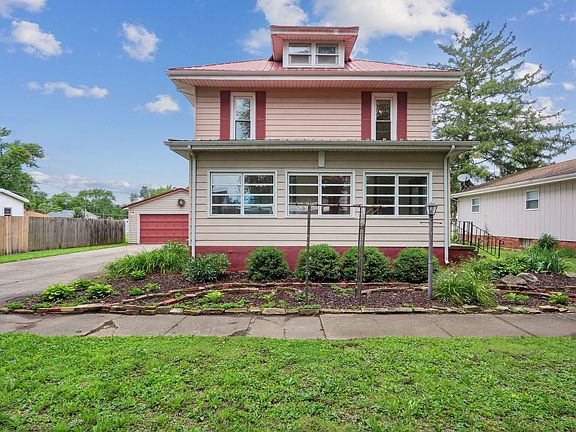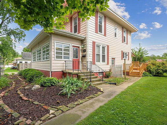 This well maintained four-square home boasts character and updates throughout! Upon entry inside from the sunroom, you'll notice the refinished hardwood floors and newly painted interior. An updated kitchen with all stainless steel appliances and updated backsplash is located in the back of the house connected to the cozy family room. Upstairs, there are three bedrooms sharing a spacious full bathroom. The primary bedroom is large with a generous-size walk-in closet. The spiral staircase leads to the finished attic, perfect for a bonus area or flex space. Outside the large deck is great for entertaining. Two insulated, detached garages allow for ample storage. Located in the small community of Sidney with close proximity to Champaign-Urbana. Call this your next home!
