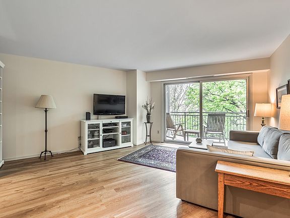 Shared amenities include fitness gym, sauna, sundeck, community room with library, professionally designed landscaping, and large guest parking lot. Association fee includes heat, water, sewer, trash, internet, cable, and laundry on each floor. This is a secure building with an on-site manager from 8 AM to midnight.