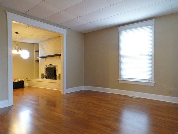 CHARMING 3 BR HOME W/FIREPLACE. This home features large rooms and a bay window in the front bedroom. Living room leads into the dining room which has a wood-burning fireplace to warm your home and/or roast marshmallows. Unique small door for loading in wood. New carpet. Half-bath is plumbed for a shower and has the laundry facilities. Sweet front porch and concrete back patio that leads to detached garage. Fenced back yard. Kitchen appliances stay.