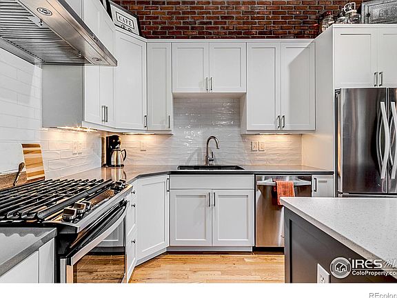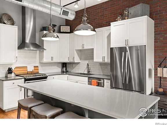 Discover effortless downtown living in this stunning Old Town loft, offering a perfect blend of style and convenience. Nestled along Old Town's charming, tree-lined streets, you'll be just moments from shopping, dining, and entertainment. This secure building showcases modern industrial design, complete with exposed brick walls, ductwork, and lofty 12-foot ceilings, yet remains warm and inviting with rich wood floors, 8-foot doors, and comfortable living spaces. The large kitchen is a standout, featuring a white custom cabinetry, spacious stone island with ample seating and sleek stainless steel appliances, making it perfect for both everyday cooking and entertaining. This unit offers a generous master retreat, secondary bedroom with built-in desk area, private laundry and secure parking garage plus a private storage room for added convenience. Step out onto your private deck or head to the rooftop patio to enjoy breathtaking mountain views, fireworks, or the festive downtown lights. The building also offers a conference room with a wet bar, providing an ideal space for meetings or social gatherings. Don't miss the chance to embrace low-maintenance living in the heart of Old Town-schedule your showing today!
