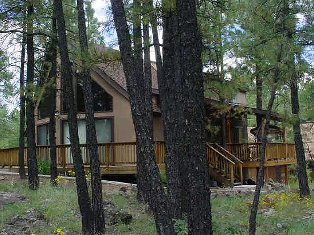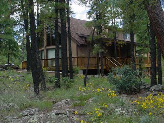 Location is everything with this chalet located on a dead end street cul d'sac. Heavily Ponderosa treed lot. Large deck for entertaining. Unusual feature of the loft is having the capabilities of being glassed enclosed or open. Closed keeps the game activities noise almost to none. Also heps maintain a comfortable heat temperature in the loft. Home is built for entertainment with surround sound system , cable in all bedr/loft. and cozy fireplace. Come watch Elk and enjoy a millions of stars. Only 16 mins/21 miles So. of Flagstaff. Country Club/18hole golf community.