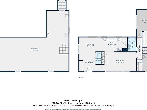 The primary bedroom is privately located at the rear of the house and features a spacious walk-in closet along with its own half bath. A second bedroom, a full bathroom, and access to the full basement are conveniently located down the hall.