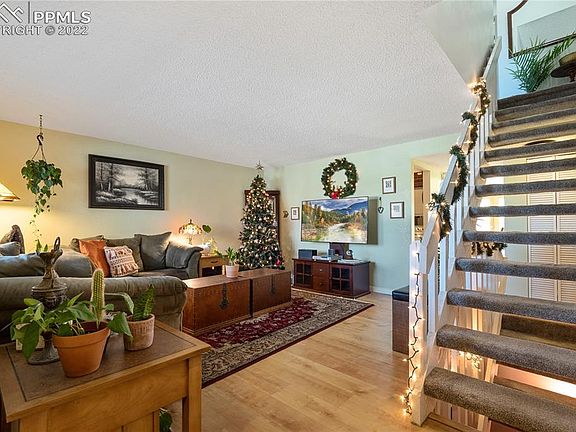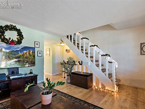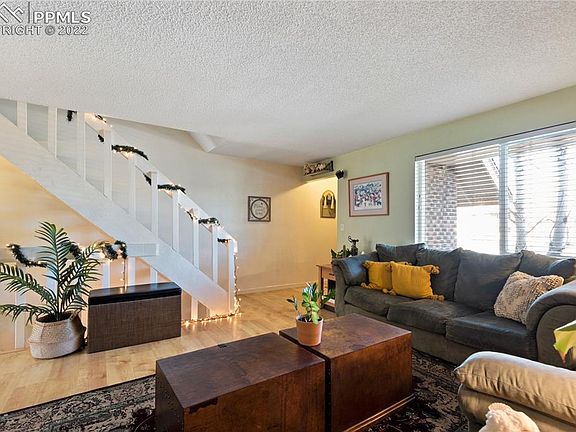 Beautiful 3-bed, 3-bath, 2-story condo with a finished basement, a 2-car carport, a private fenced patio, and Pikes Peak views! Welcome home to this highly sought-after west-side community with green areas, a clubhouse, a pool, a spa, a hot tub, and a sauna. Enter the home to the formal Living Room and the gorgeous wood laminate flooring throughout the main level living areas. The huge eat-in Kitchen has stainless steel appliances, tons of cabinets, and walks out to the spacious patio through French Doors. The Laundry space and Powder Room are on the main level. The Master Bedroom has two closets and features an attached Jack and Jill full bath with double vanities adjoining the Master and second bedroom. The finished basement includes a large Family Room, the 3rd bedroom, and a 3/4 bath. The enormous patio with a privacy fence is ready for outdoor entertaining and fun. Don't miss out, make this your home today!