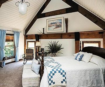 This custom built Chalet style, timber frame, home has exceptional built in quality including 12 inch exterior walls and stone on both inside and out, extensive use of refinished old beams and wood through the home. The home features 2 levels, 3 bedrooms and 3 bathrooms constructed with a creative use of stone. The property consists of 13.33 acres and a seasonal stream.