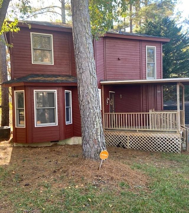 Adorable and spacious 2-story, move-in ready home. Eat-in kitchen with bay window, open to cozy den. Refrigerator is included. Half bath downstairs. Upstairs is 2 bedrooms, bathroom and laundry closet with stackable washer & dryer. You will love the inviting front porch, and especially the private screened back porch that backs up to woods! A storage room is accessible from the outside as well as a storage shed. New in 2021: roof, exterior paint, most interior paint, and hot water heater.