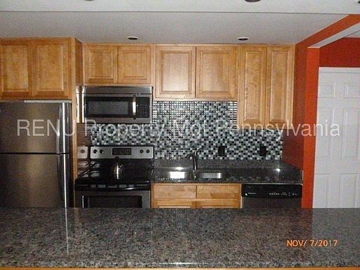 Updated eat-in kitchen with granite counter tops and enormous island, tile backsplash, double sink, and stainless steel appliances. The kitchen opens to the Living Room/family Room that features a brick fireplace for cozy winter days. The large master bedroom w/ walk-in closet features its own full bath with a stall shower. The second bedroom is just across the hall from a full bathroom featuring a tub and shower. The kitchen, dining area, family/living room all have tile floors as do both full bathrooms. Recently painted throughout. Washer/dryer. Assigned parking outside of building. Treddyffrin/Easton school district. Tenant is responsible for electric and gas. No pets allowed. No smoking allowed. Rental Terms: Rent: $1,300, Application Fee: $45, Security Deposit: $1,300, Available Now Pet Policy: Cats not allowed, Dogs not allowed This property allows self guided viewing without an appointment. Contact for details.