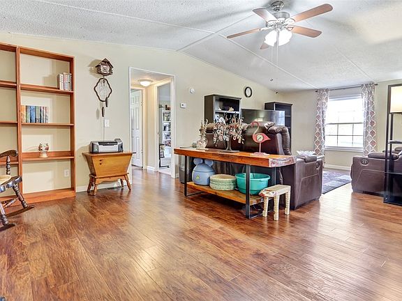 Your own private paradise on 2.54 acres! This detitled, USDA- and FHA- eligible home has been immaculately kept and beautifully updated.Spacious kitchen and master bedroom fit for a king! The sellers added an oversized garage with plenty of storage space and an 8' door. Fromthe garage, step out into the 20' x 10' workshop (full electric!). New roof in 2018 and a number of updates were done in 2020, including addingadditional cabinets and pantry in the kitchen, all new water lines with in-house shut off, new toilets and vanities in both bathrooms, new insulatedtilt-out windows throughout the home, rear deck expansion, and front deck replacement. Children will enjoy the custom-built playground whileadults sit around the firepit. With no HOA, you have free will to create your dream life in this tranquil setting. For added peace of mind, the HVACis professionally maintained twice a year and the home is treated annually for termites.