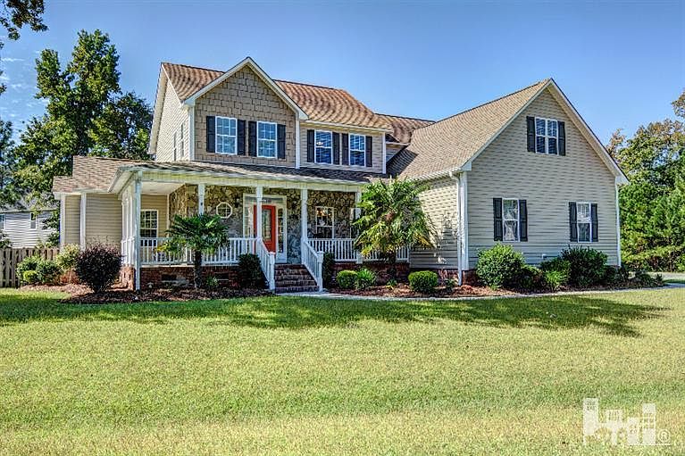 This beautiful 5 bedroom custom home walking distance to ICWW private easement sits on a half an acre lot. Centrally located in Topsail School district between Jacksonville and Wilmington. The home offers First floor private owners suite. Grand 2 story Foyer open floor plan dining room, kitchen, great room w fireplace. 4 additional bedrooms, 2 full baths with bonus room on the second floor. You can relax on the stone finished wrap-around porch or entertain on the large back deck with screened in porch and completely fenced in yard. This home features many top quality finishes u must see! Comes with community pool & clubhouse. Boat launch & slip available!