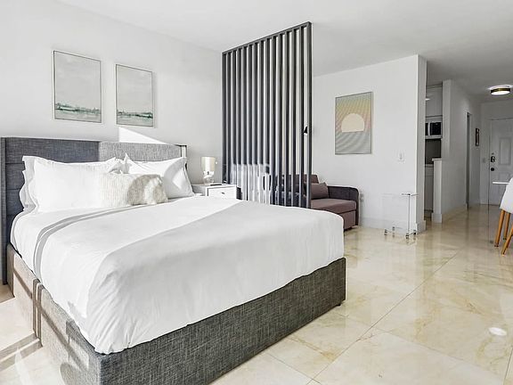 Welcome to La Marinita, a contemporary studio nestled by the marina with stunning bay views. Experience the perfect mix of tranquility and city convenience in this fully renovated space, designed with no expense spared. Enjoy serene bay views, modern amenities, and easy access to all that Miami has to offer. Plus, you're just a short walk from the future AFA/Messi Soccer Academy! This studio boasts incredible views and has been fully remodeled and freshly designed. It features a fully equipped kitchen and offers on-site parking for up to two cars. Comfortable sleeping arrangements include a queen bed and a futon for additional accommodations. The kitchen is fully equipped for your culinary adventures, including modern appliances and cookware. There is an accessible laundry room on the same floor, with laundry cards available for purchase in the lobby. Concierge services are available for booking local experiences like boat rentals, chefs, or massages. The studio includes WiFi, Smart TVs, an ironing set, laundry facilities, and starter toiletries. Note that washcloths and kitchen towels are not included. Located in North Bay Village, this studio provides easy access to Miami Beach, Wynwood Walls, Downtown Miami, Bal Harbour Shops, and the Miami Design District. Just a short stroll from the future AFA/Messi Soccer Academy, the neighborhood is known for its dynamic urban ambiance, with a plethora of restaurants, chic coffee shops, and serene parks. We recommend renting a car or taking Uber for convenient transportation. Check-in is after 4 PM and checkout is before 11 AM, with early or late options available upon inquiry. Pets are not permitted in the studio. Quiet hours begin at 10 PM, and the number of guests cannot exceed those specified at booking. No additional visitors or overnight guests without prior approval, with violations incurring a $50 fee per person and potential termination of stay without refund. All guests must be 21 years or older unless accompanied by a parent or pre-approved. No underage drinking, drugs, marijuana, or vaping are allowed, with any smoke smell incurring a $100 cleaning fee. Security cameras are in use outside for protection. The TV is for streaming with your own login, no network channels. Respect the residential area and noise ordinance between 10 PM and 8 AM, as violations may result in police visits and immediate eviction. Includes WiFi and Smart TVs for your entertainment and connectivity needs. A laptop computer is not included.