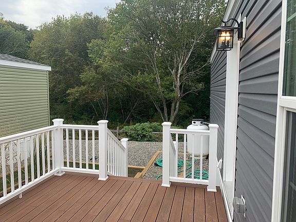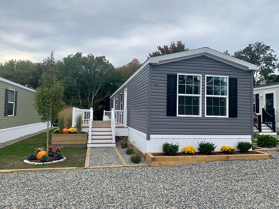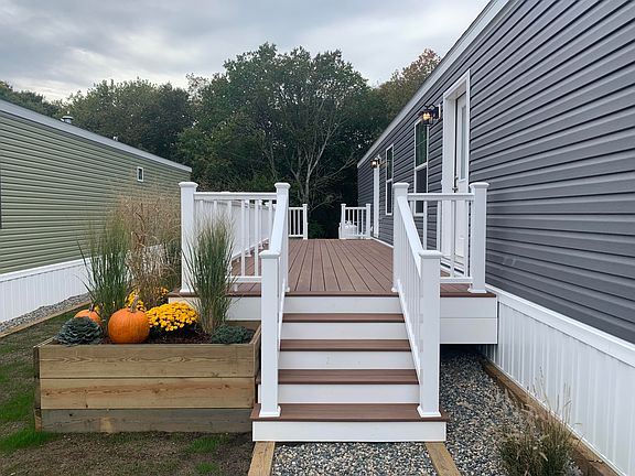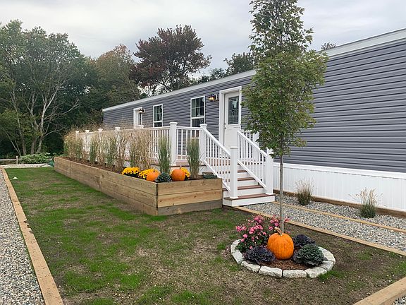 New Construction, turnkey 2 bedroom 2 bath home that comes with a 1 year manufacturer's warranty. Energy efficient stainless steel kitchen appliances included: refrigerator, dishwasher, stove and microwave. Stainless steel farmers sink, subway tile gives it a modern sleek look. Crown molding throughout. Master bath has a walk-in tiled rainshower in a glass barn door inclosure. 2nd bath has full sized tub. Composite deck is 10x28, with no maintenance vinyl siding. Architectural roof. Pet friendly community. This purchase does not include Real Estate. No HOA fees. There is a land lease fee which is presently $554 a month. Fee includes water, septic, garbage, and snow removal on roads, and NO yearly land taxes. Pet friendly. Buyer must complete tenant lease and be approved by land owner for sale. Tax due on Tangible property per MA DOR.